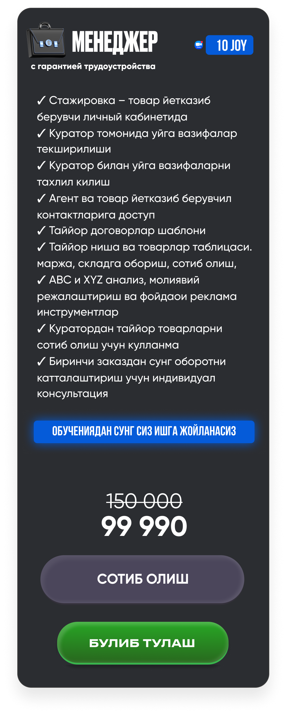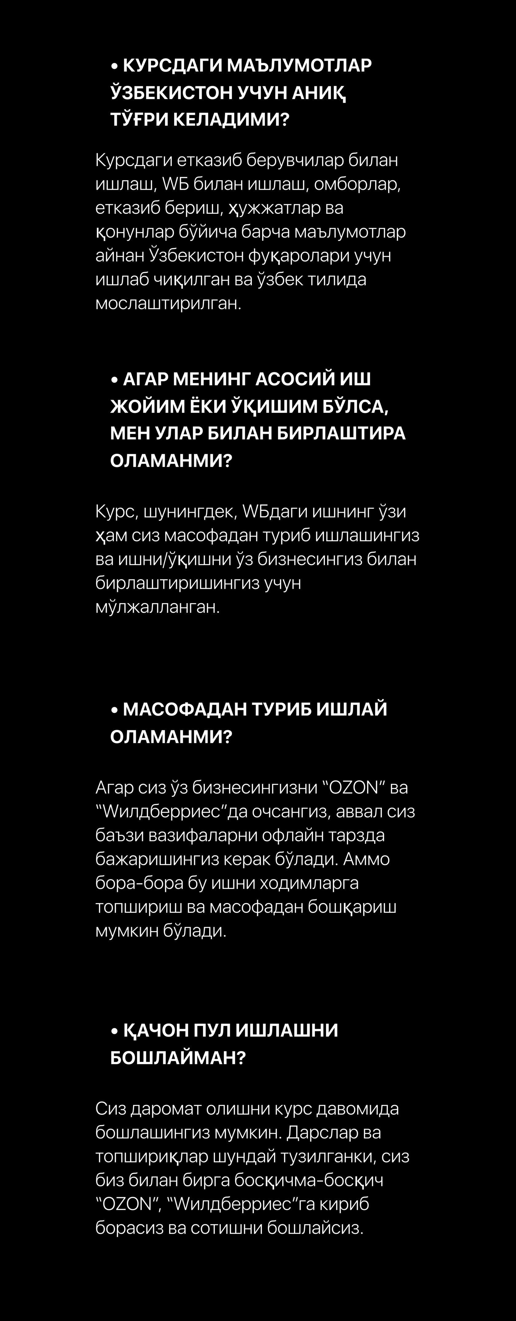 ● Маркетплейсда ишлашнинг барча стратегиясини урганиш